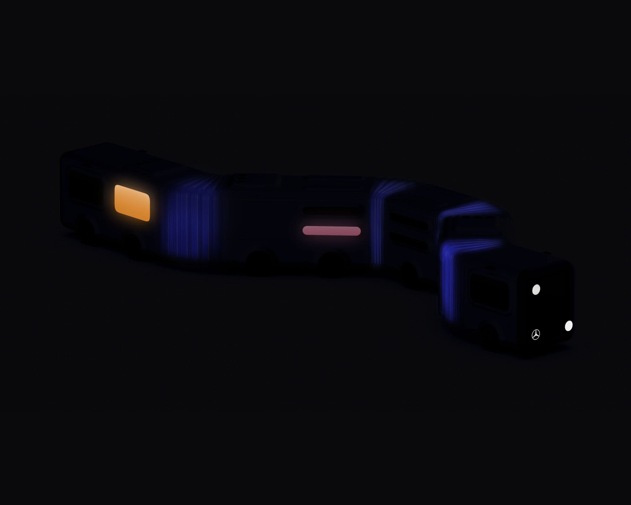 To design an experience means approaching the whole ecosystem of product touchpoints. For the Mercedes bus, we explored: private entryways instead of a single crowded door: