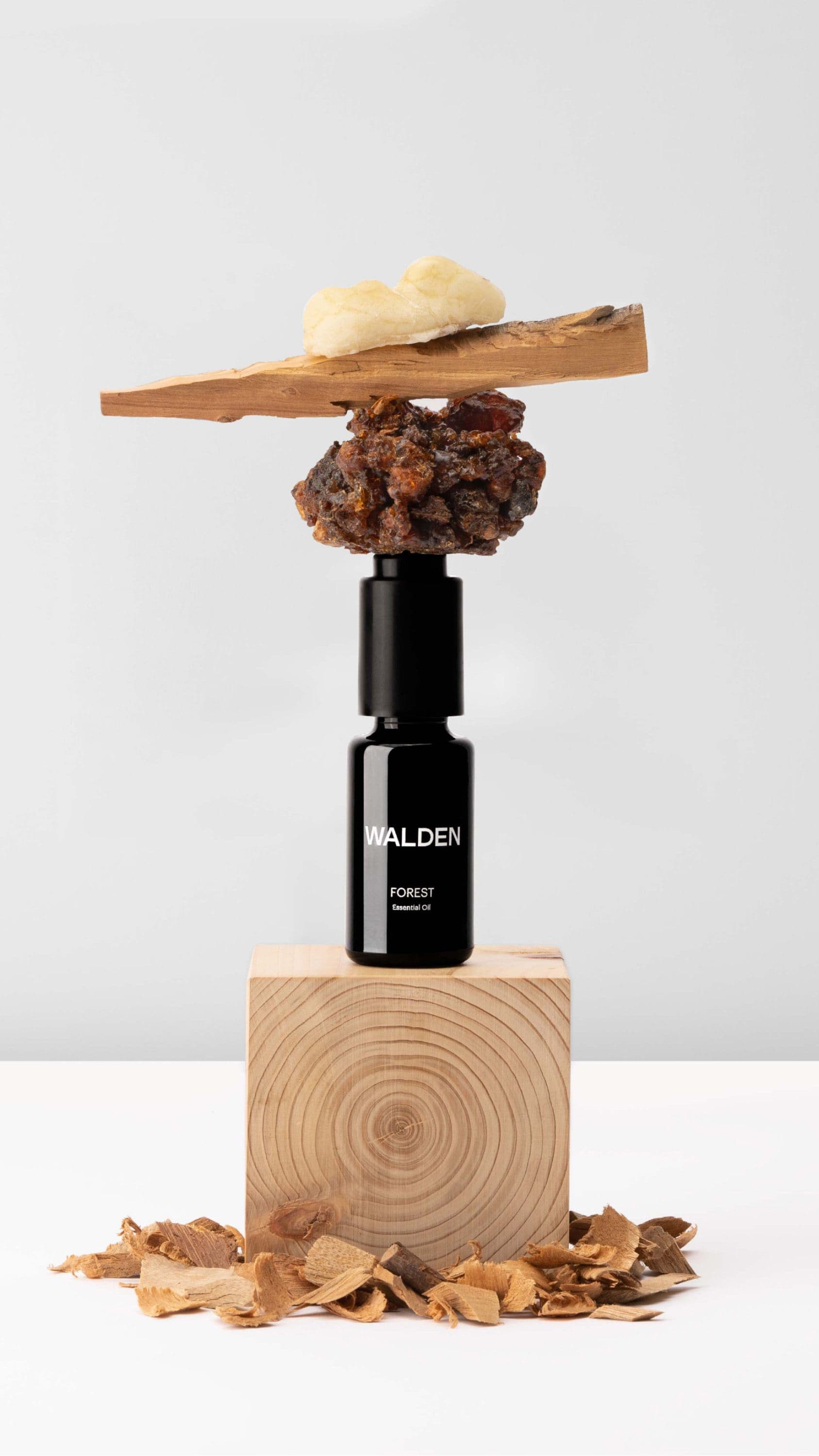 We worked with Bioalchemy, a New York-based olfactory studio, to create a custom essential oil blend. The scent was Forest. Made from about as pure ingredients as you can get, it was an homage to the book, to nature, to the feeling of being outdoors. Once we had the oil, we started designing objects to bring it to life. Different skin applications, a Lava Rock Diffuser, a candle lit burner.